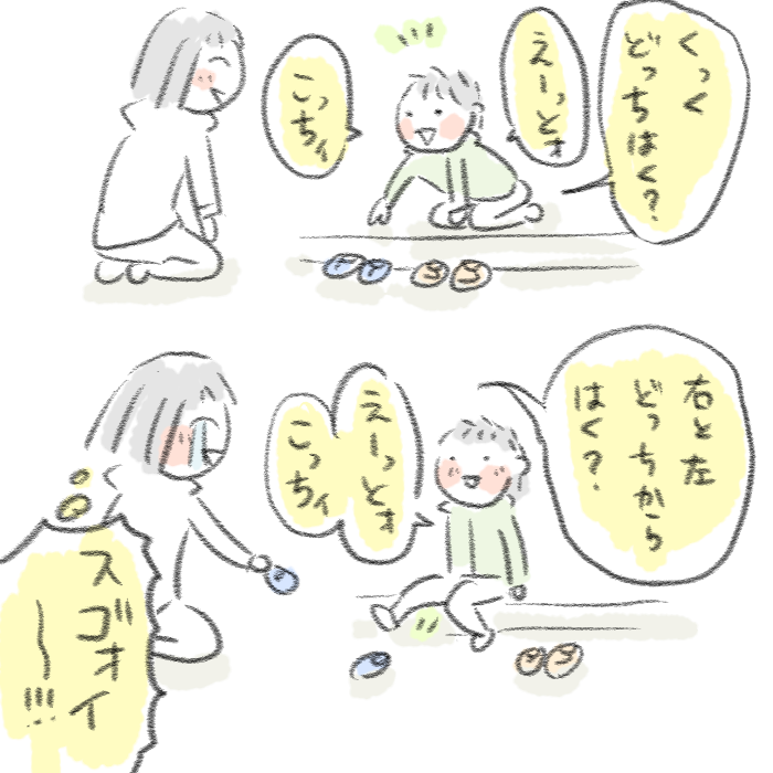 「靴はくよ」