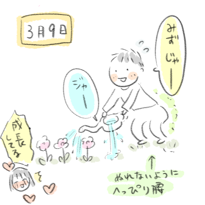 2歳2ヶ月 > 日常 2023年03月27日 26【2歳2ヶ月】2歳の「失敗から学ぶ」を見た瞬間 ※当ブログはアフィリエイト広告を利用しています 今は5歳の息子の、2歳のときのエピソードです!親のやってることをどんどん奪ってやりたがろうとするこの時期…ジョウロをうまく傾けられずにほとんどを自分にかけていました。こぼしたときに「こう持つんだよ」とかわざわざ教えなかったんですが、本人としても嫌だったのか水に濡れまいと頑張ってる様子が見られて「これが『先回りして教えずに、自らの失敗から学ぶ』ってやつだ!!」と妙に納得した出来事でありました〜!!あとは純粋に、へっぴり腰がかわいかったです。 「2歳2ヶ月」カテゴリの最新記事 前の記事: 25【2歳2ヶ月】トイレットペーパーはいくらでも 次の記事: 27【2歳3ヶ月】寝ない2歳との戦いで意地はった挙げ句に負ける私 コメント コメントフォーム 名前 コメント 記事の評価 リセット リセット 顔 星 情報を記憶 コメントを投稿する